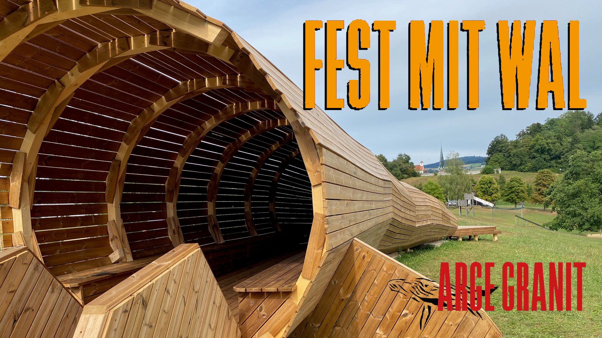 Arge Granit lädt ein zum FEST MIT WAL Die Ottensheimer Interessensgemeinschaft Arge Granit feiert sich nach 40 erfolgreichen Jahren gemeinnütziger Kulturarbeit selbst und macht sich zu diesem Anlass einen "Donauwal" zum Geschenk. In einem kleinen, aber skurrilen Festakt wird die begehbare Holzskuptur von ANDREAS BUTTINGER - CASPAR ihrer Bestimmung zum kulturellen Nutzen durch die Allgemeinheit...