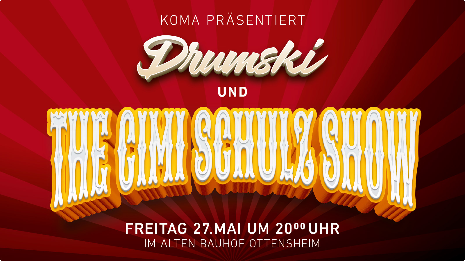 The Cimi Schulz Show Ist eine Fusion von zwei Personen aus unterschiedlichen künstlerischen Bereichen. Der Musiker Christoph Schulz, bekannt durch seine einzigartige Interpretation der Maultrommel und Cimi Czimek, bildende Künstlerin mit Hang zu performativen Rauminstallationen, vereinen sich zu einem Crossover aus den unterschiedlichsten Maultrommeln, diversen Blasinstrumenten (vom Kinderspielzeug bis zur Klarinette) Gedichtgesängen und Frisörfönen. Das...
